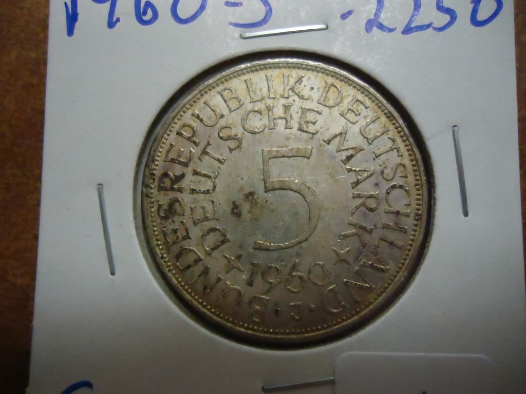 1960-J GERMAN SILVER 5 MARK .2250 OZ. ASW