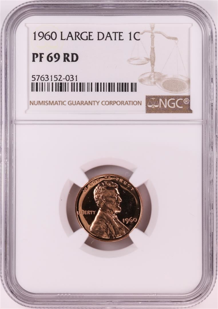 One 1960 Large Date Proof Lincoln Memorial Cent Coin NGC PF69RD. NGC Certified.
