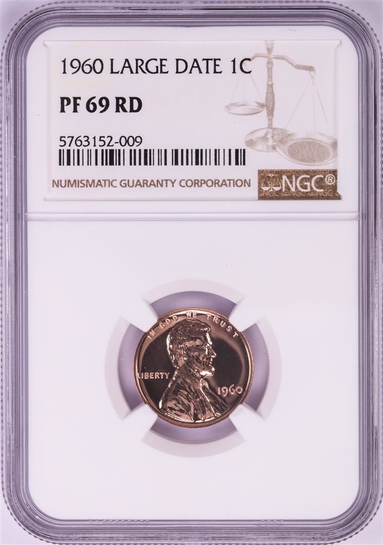 One 1960 Large Date Proof Lincoln Memorial Cent Coin NGC PF69RD. NGC Certified.