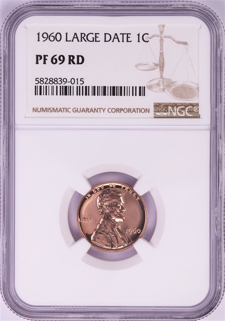 One 1960 Large Date Proof Lincoln Memorial Cent Coin NGC PF69RD. NGC Certified.