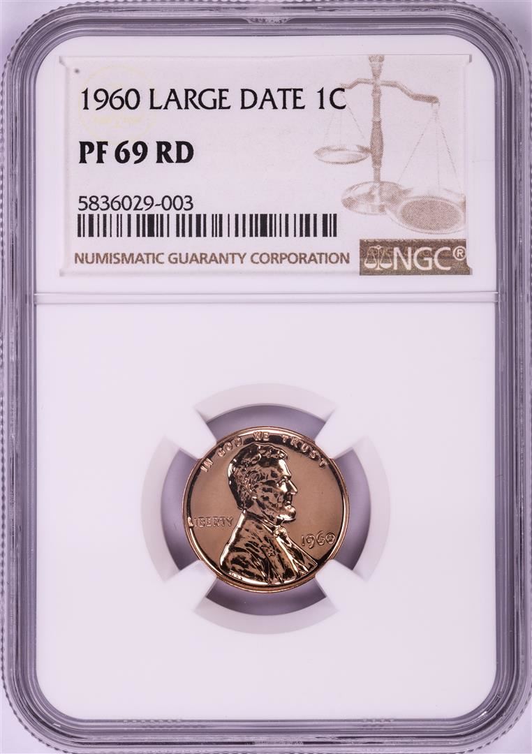 One 1960 Large Date Proof Lincoln Memorial Cent Coin NGC PF69RD. NGC Certified.