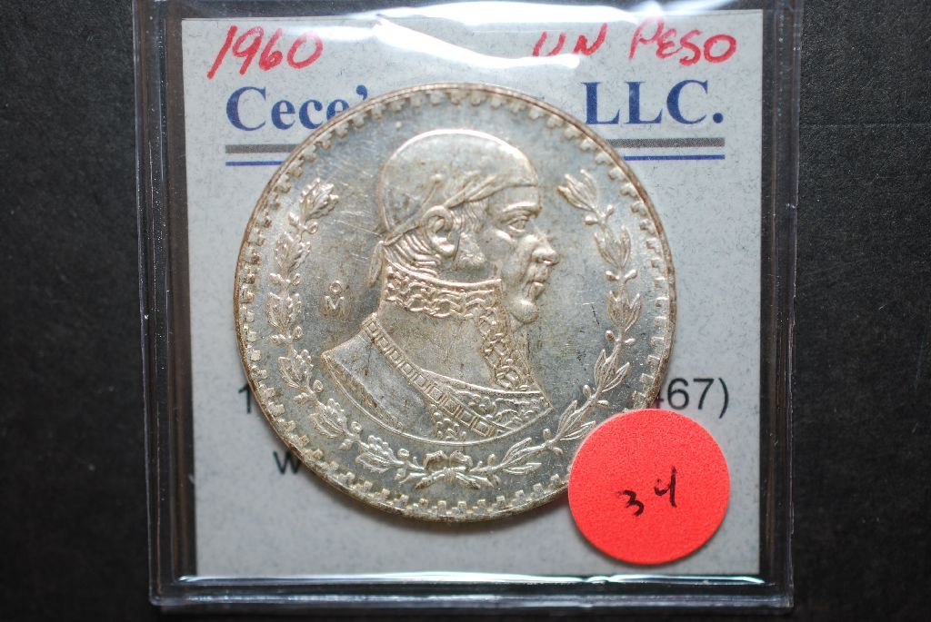 1960 Mexico Un Peso Foreign Coin; EST. $2-5