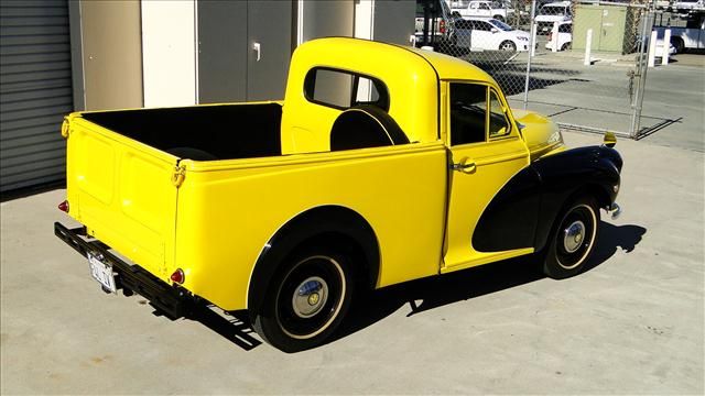 1960 MORRIS MINOR 1000 PICK UP VERY RARE US EXPORT MODEL ONE OF 200 IMPORTED HERE TO AMERICA. 1000cc 4 CYLINDER ENGINE, MATED TO A 4 SPEED MANUAL TRANS MISSION, FINISHED HARDWOOD BED,CLOTH INTERIOR, SOLID RUNNING LITTLE TRUCK, RECENTLYREPAINTED IN YELLOW OVER BLACK WITH A BLACK CLOTH INTERIOR.