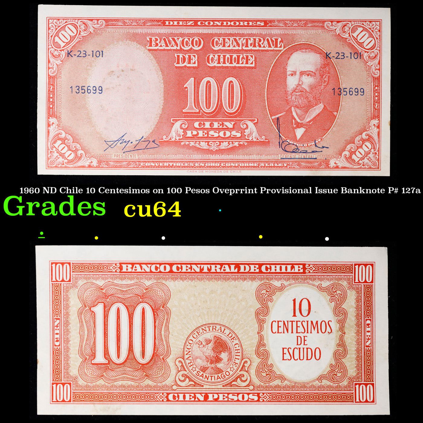 1960 ND Chile 10 Centesimos on 100 Pesos Oveprrint Provisional Issue Banknote P# 127a Grades Choice CU.