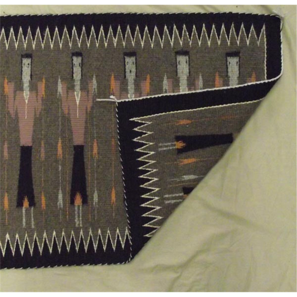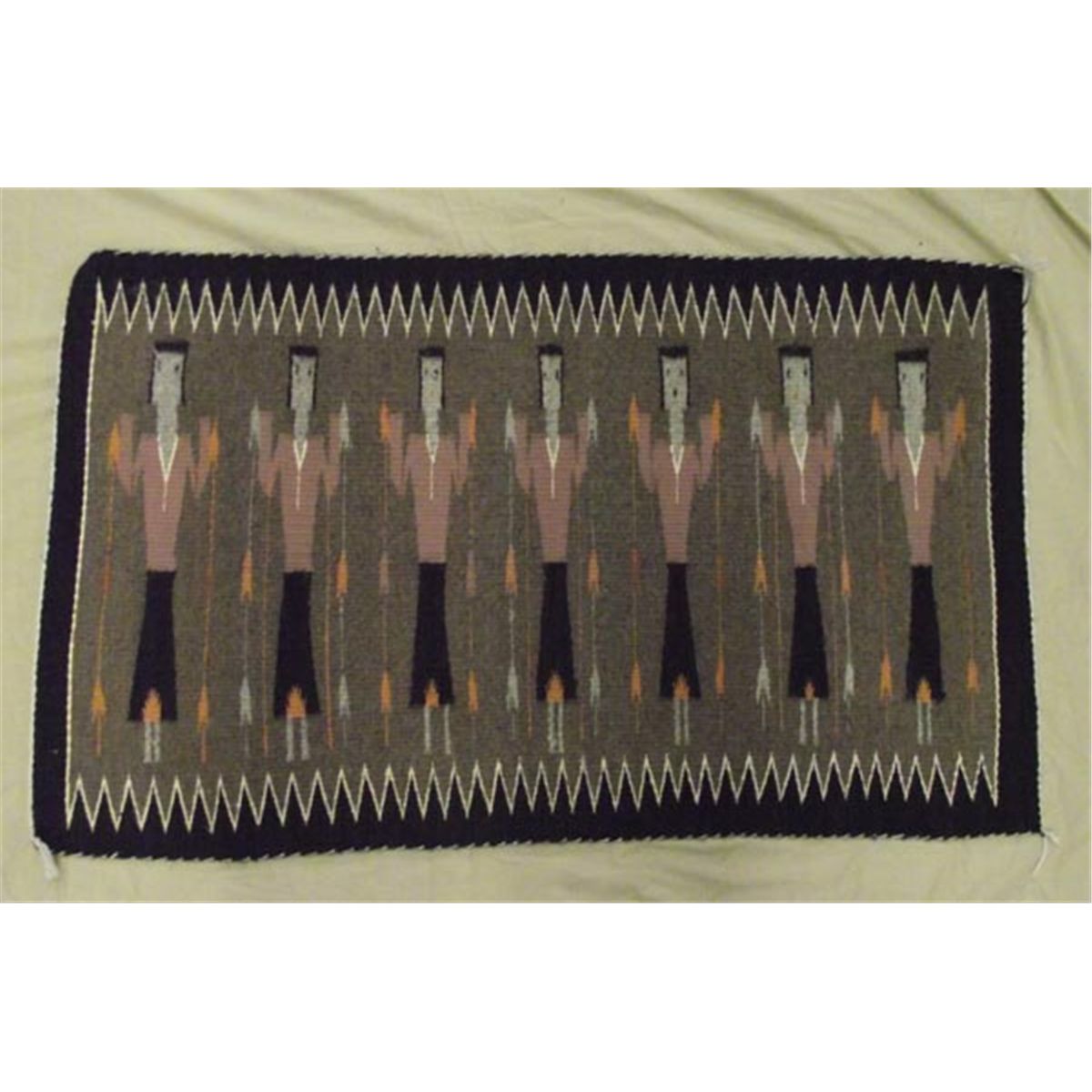 1960 Navajo Yei Rug. Measures 22.5'' x 39''. Colors are black, white tan , lt. orange and mauve. Classic rug with 7 Yei figures. Buyers Pay Actual Shipping and Handling Charges(see terms and conditions for more information).