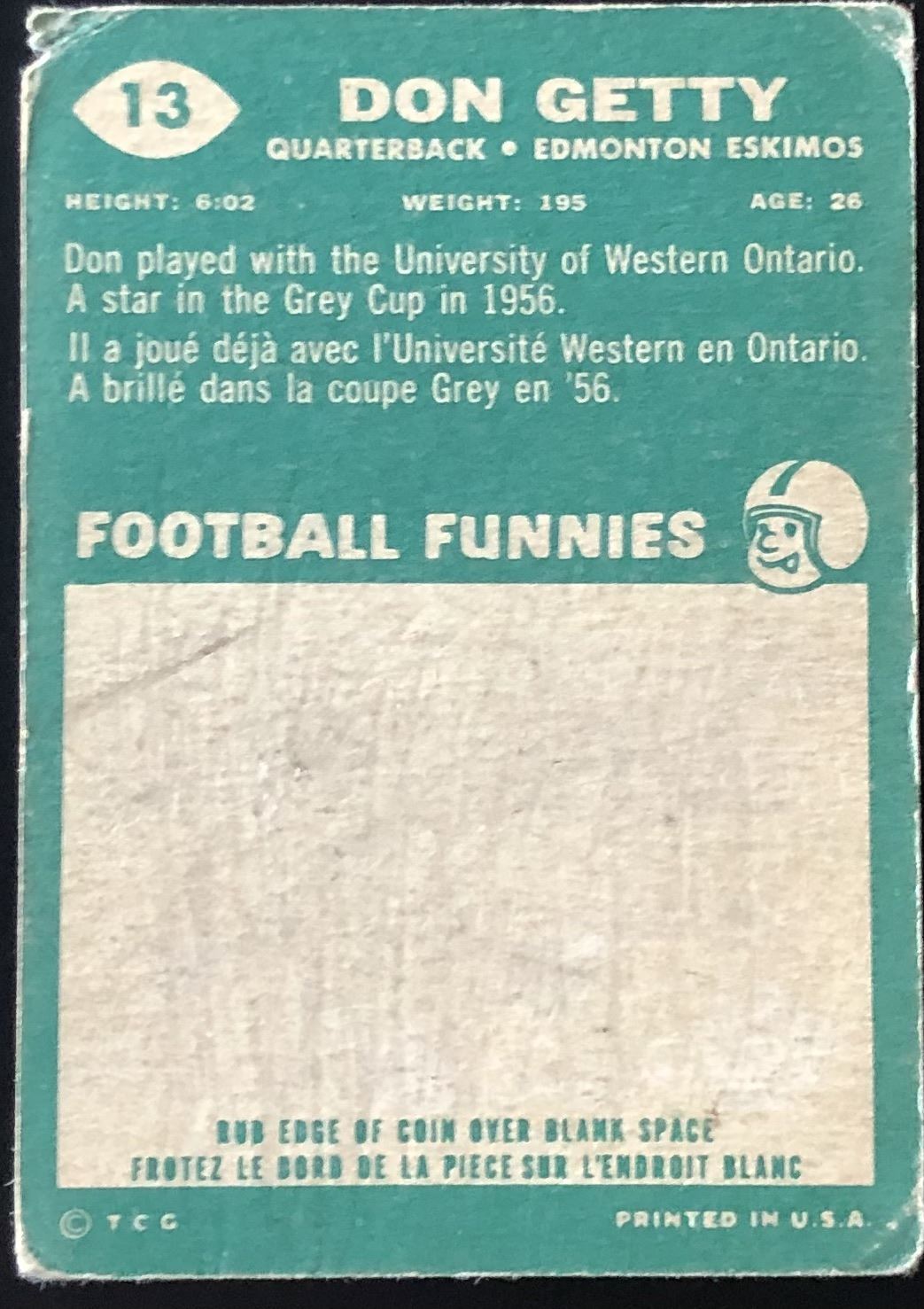 Card #13 filler quality (bottom right corner extreme wear) vintage, CFL, OPC, football, hall of fame