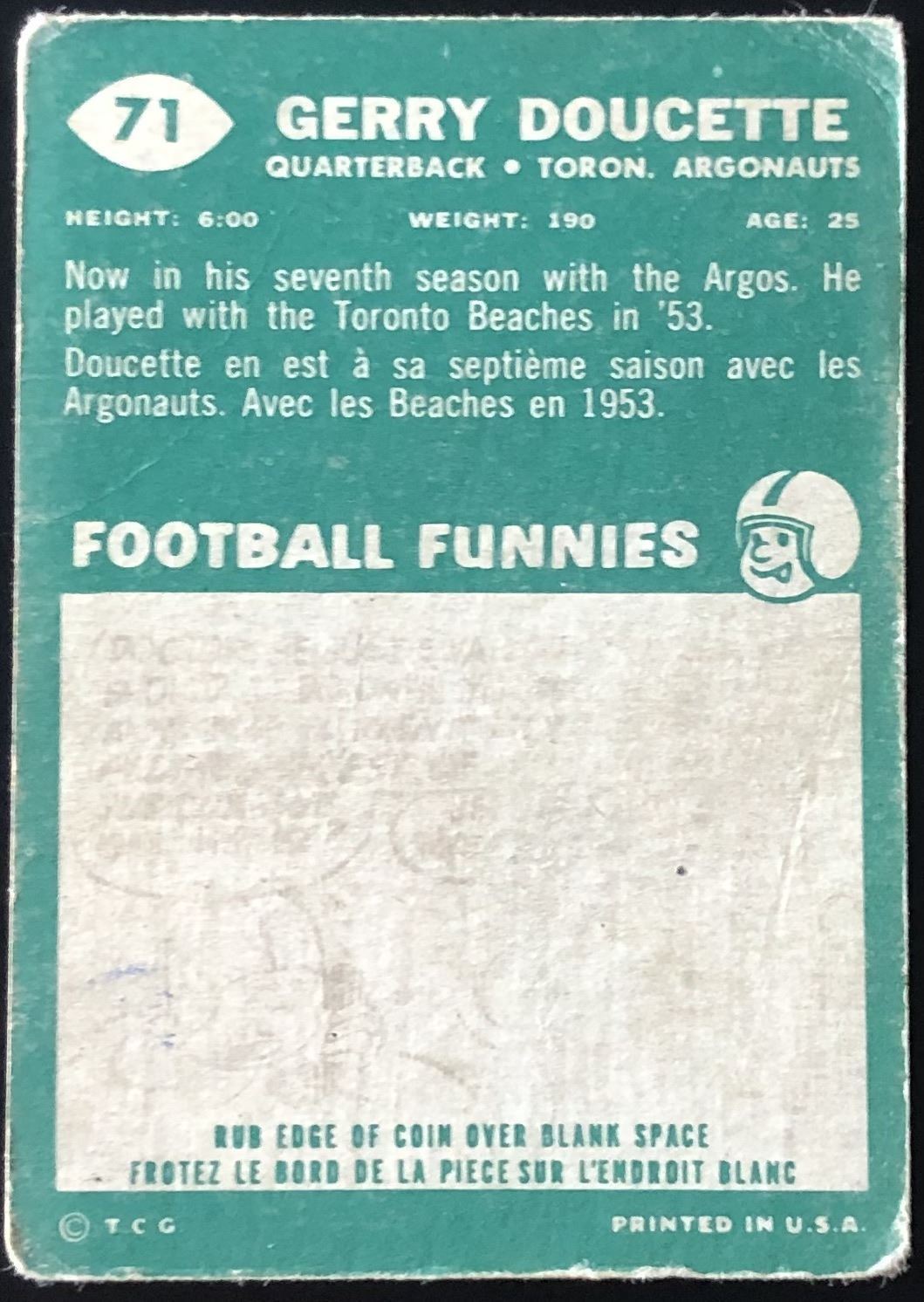 Card #71 vintage, CFL, OPC, football