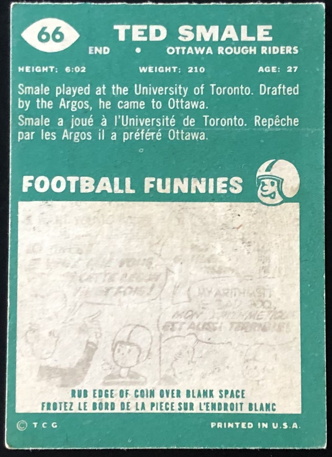 Card #66 vintage, CFL, OPC, football