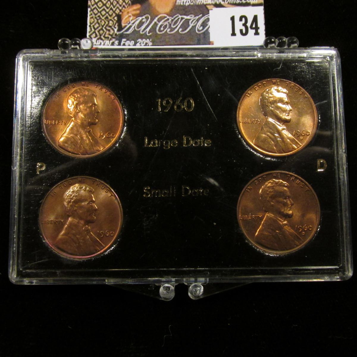 1960 P & D Small & Large Date Lincoln Cents in a black Snaptight case with gold lettering.