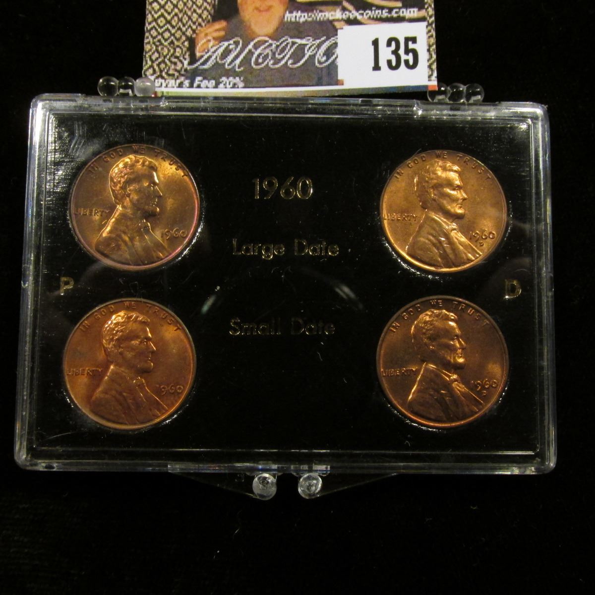 1960 P & D Small & Large Date Lincoln Cents in a black Snaptight case with gold lettering.