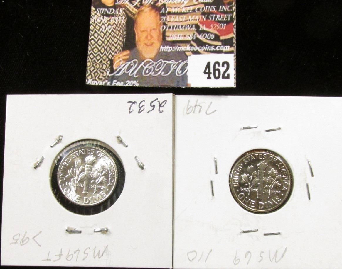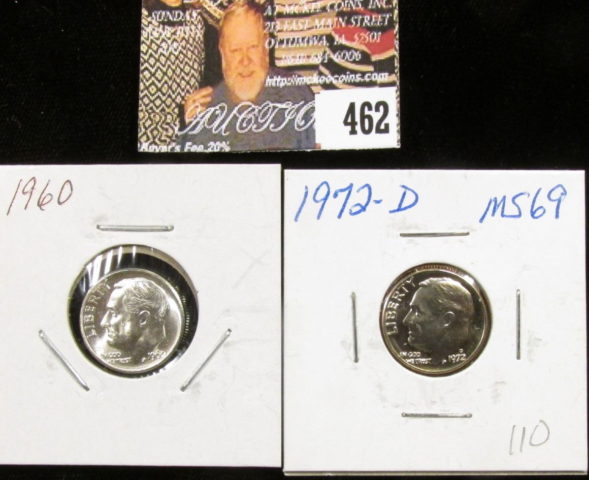 1960 P MS69 and 1972 D MS69 Full Torch Lines Roosevelt Dimes.
