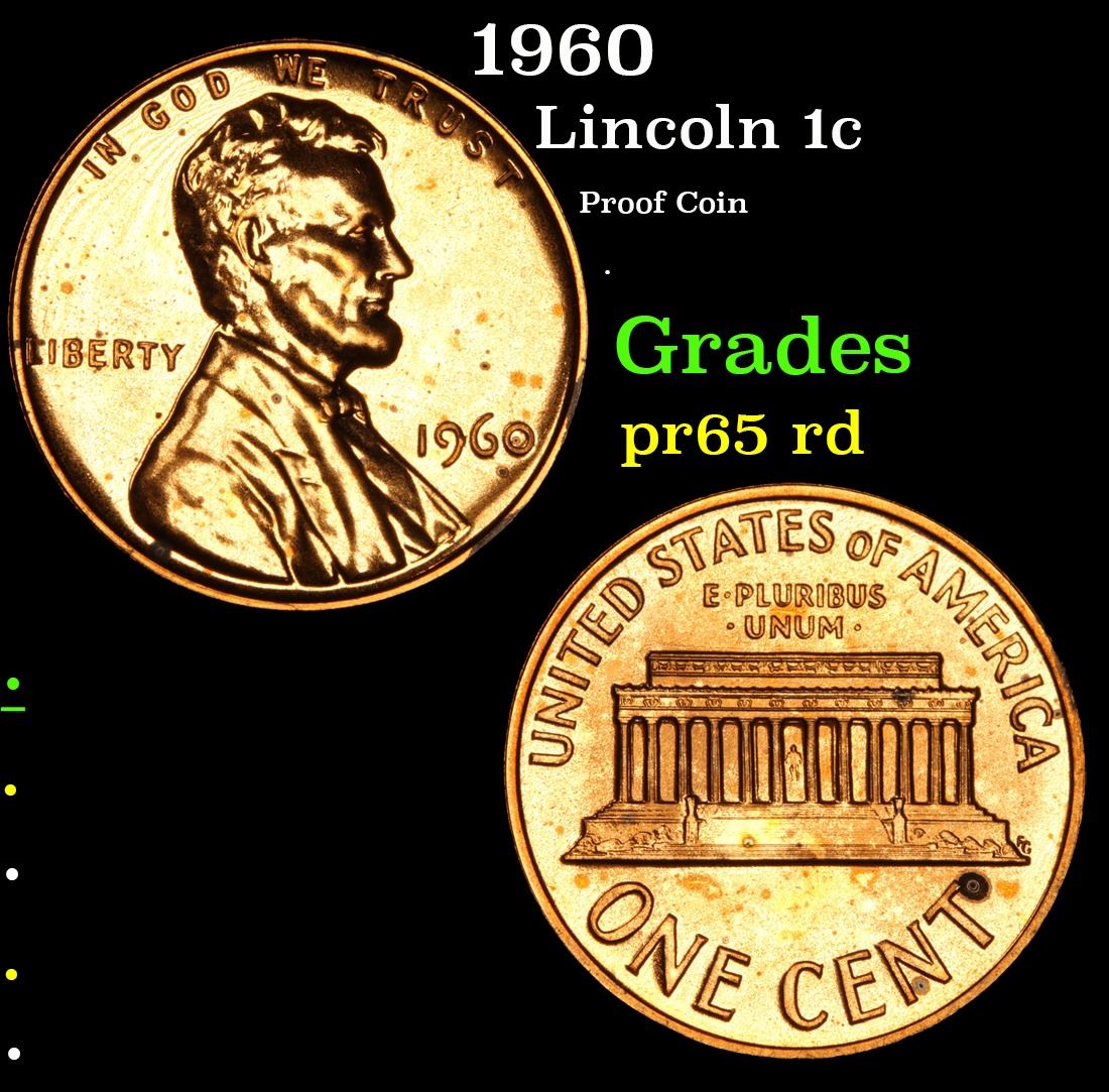 1960 Proof Coin . Lincoln Cent 1c Grades Gem Proof Red.