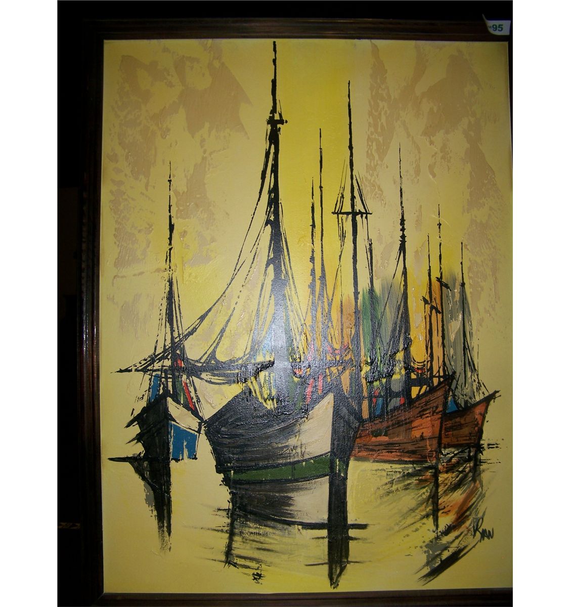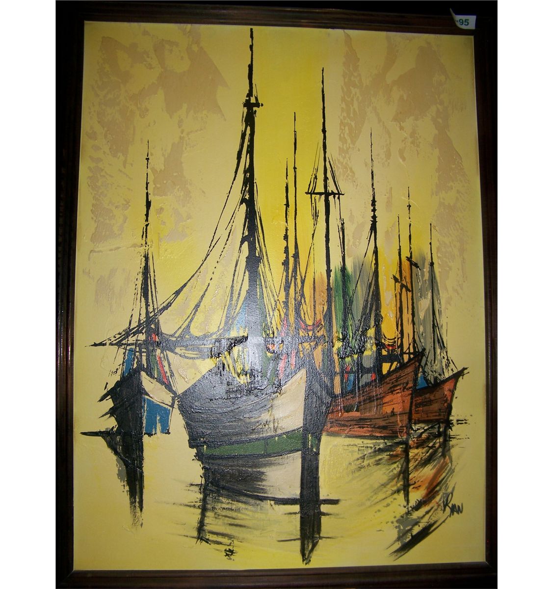 1960;S MID-CENTURY MODERN STYLE PAINTING SIGNED RYAN