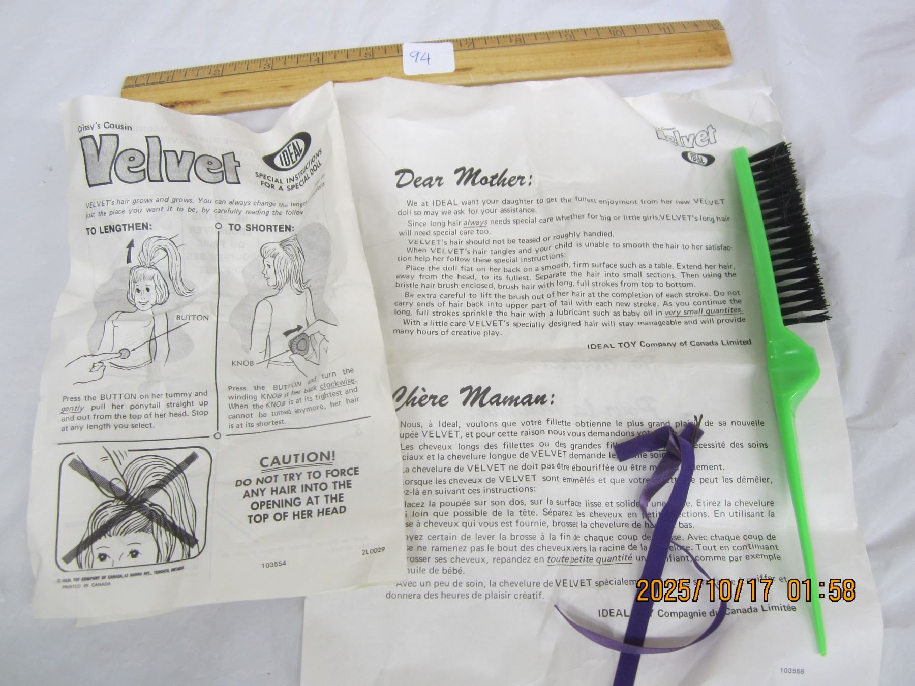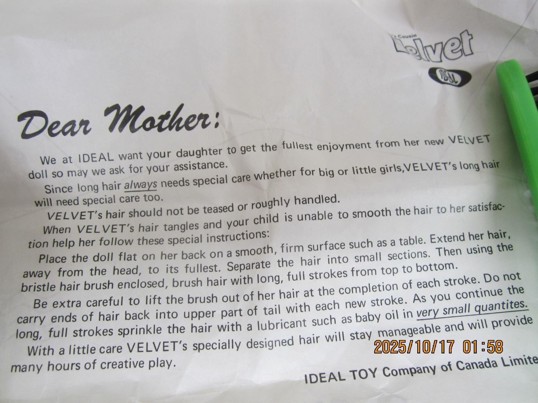 1960'S Velvet The Doll That Grows Hair in Original Box