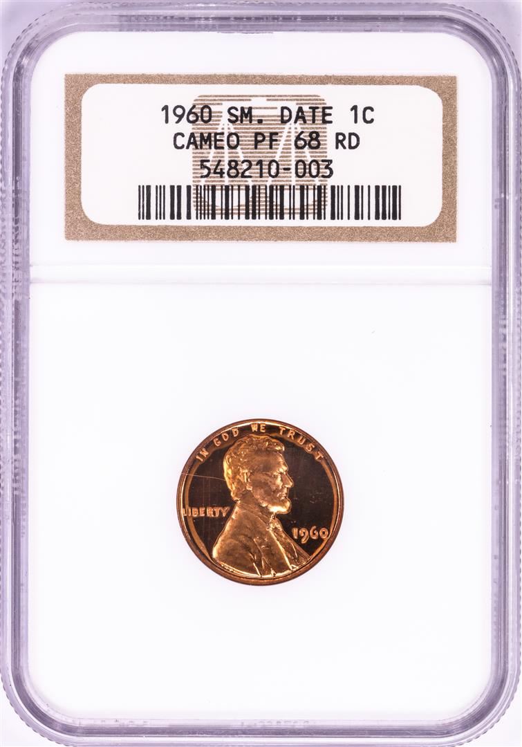 One 1960 Small Date Proof Lincoln Memorial Cent Coin NGC PF68RD Cameo. NGC Certified.