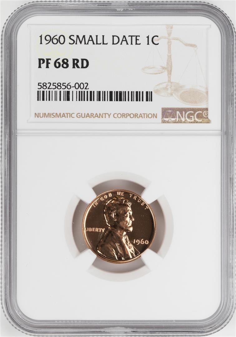 One 1960 Small Date Proof Lincoln Memorial Cent Coin NGC PF68RD. NGC Certified.