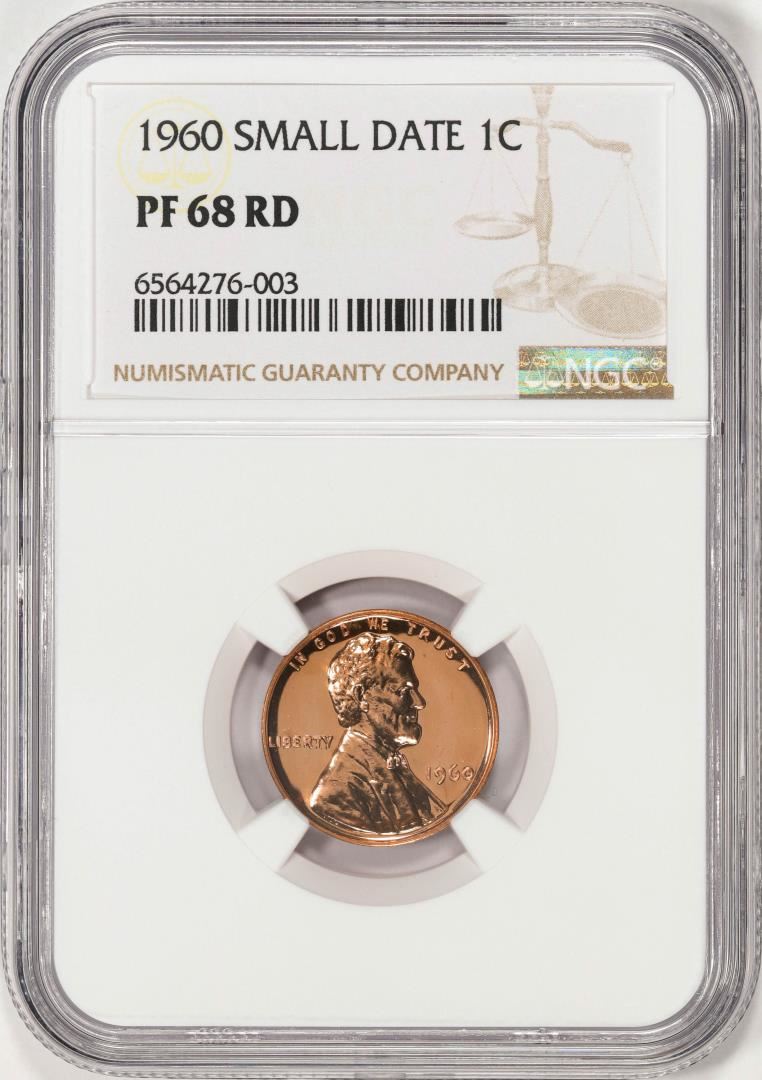 One 1960 Small Date Proof Lincoln Memorial Cent Coin NGC PF68RD. NGC Certified.