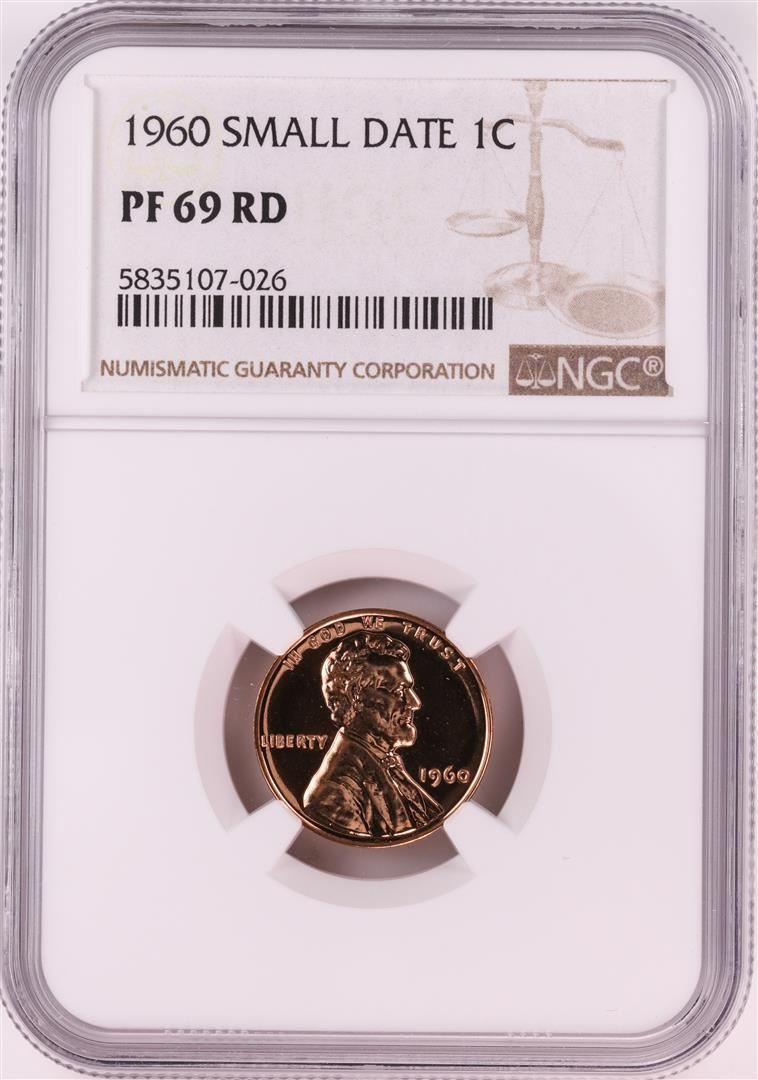 One 1960 Small Date Proof Lincoln Memorial Cent Coin NGC PF69RD. NGC Certified.