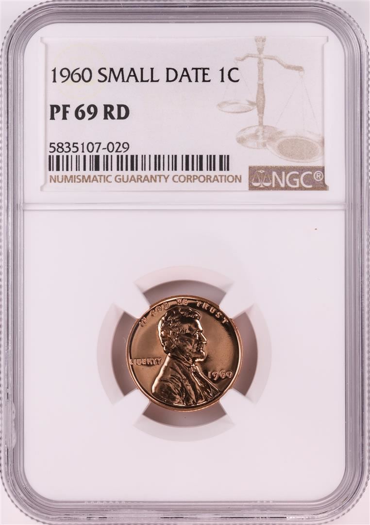 One 1960 Small Date Proof Lincoln Memorial Cent Coin NGC PF69RD. NGC Certified.