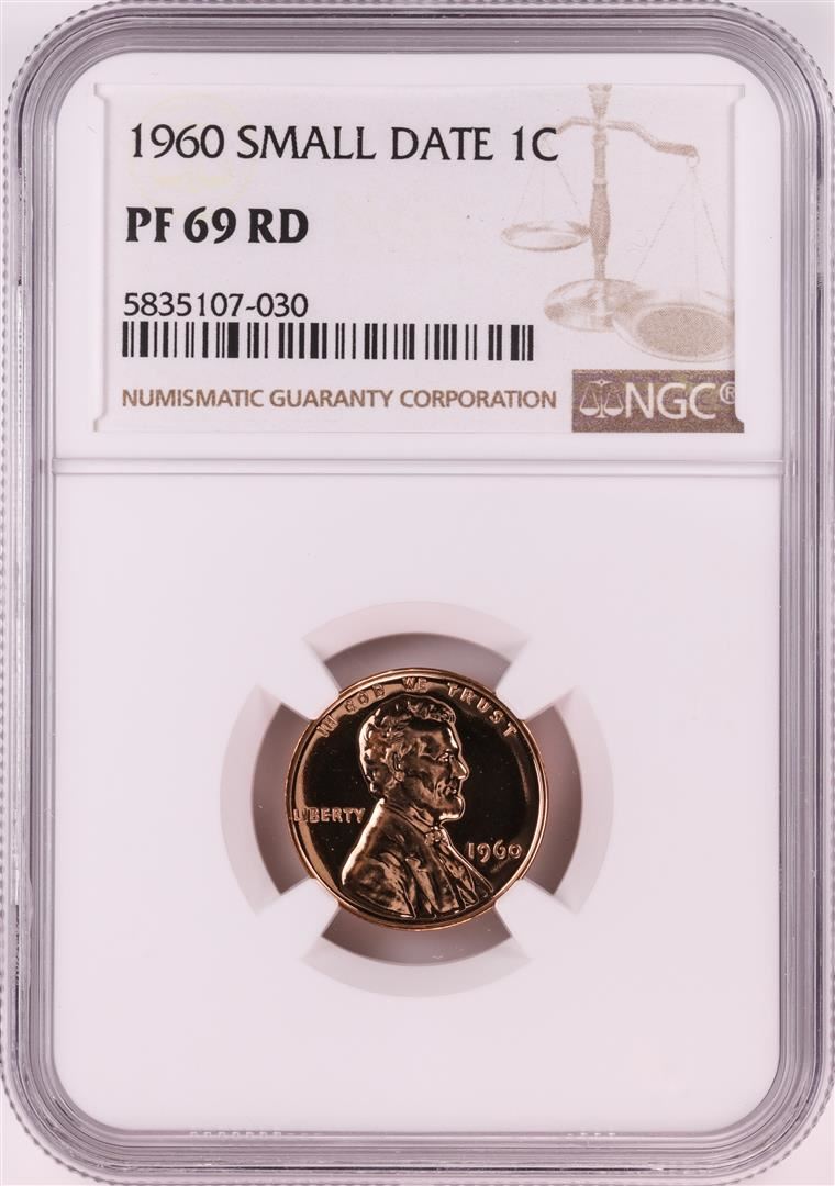 One 1960 Small Date Proof Lincoln Memorial Cent Coin NGC PF69RD. NGC Certified.