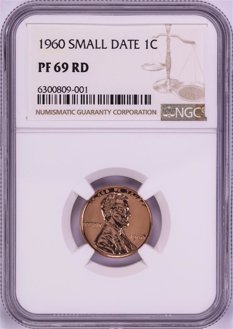 One 1960 Small Date Proof Lincoln Memorial Cent Coin NGC PF69RD. NGC Certified.
