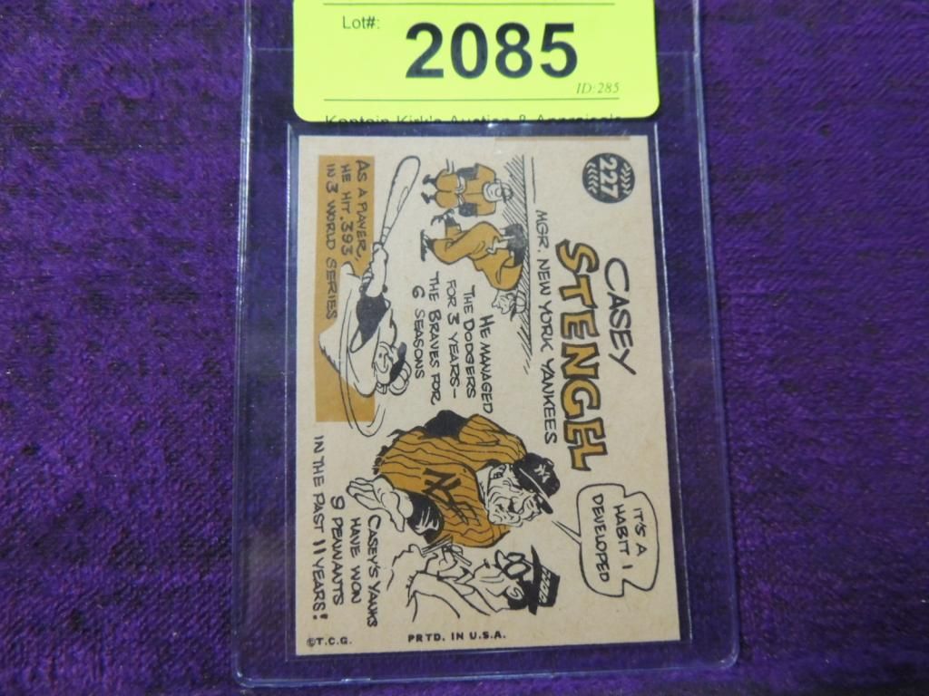 1960 TOPPS CASEY STENGEL #227 BASEBALL CARD. EXCELLENT CONDITION. BASEBALL CARD. TRADING CARD. COLLECTIBLE. VINTAGE CARD. PROTECTIVE PLASTIC SLEEVE. RARE CARD. AS SHOWN. SEE PHOTO FOR MORE DETAILS.