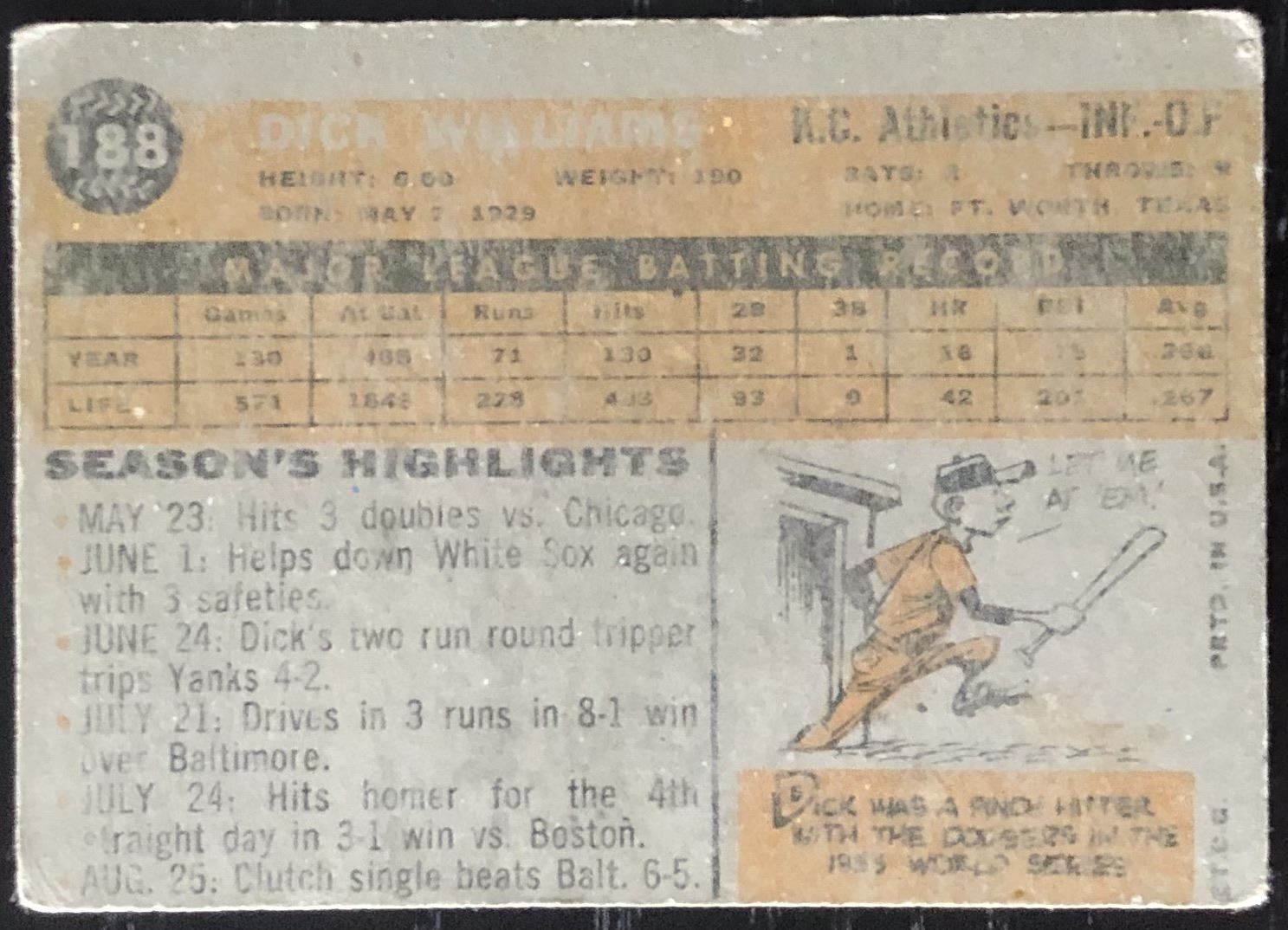 Card #188 MLB, baseball, vintage, hall of fame