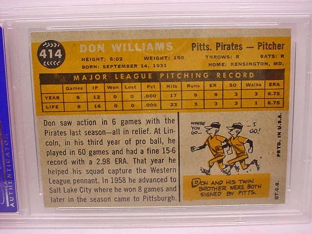 1960 TOPPS DON WILLIAMS BASEBALL CARD NO. 414 - PSA NM 7