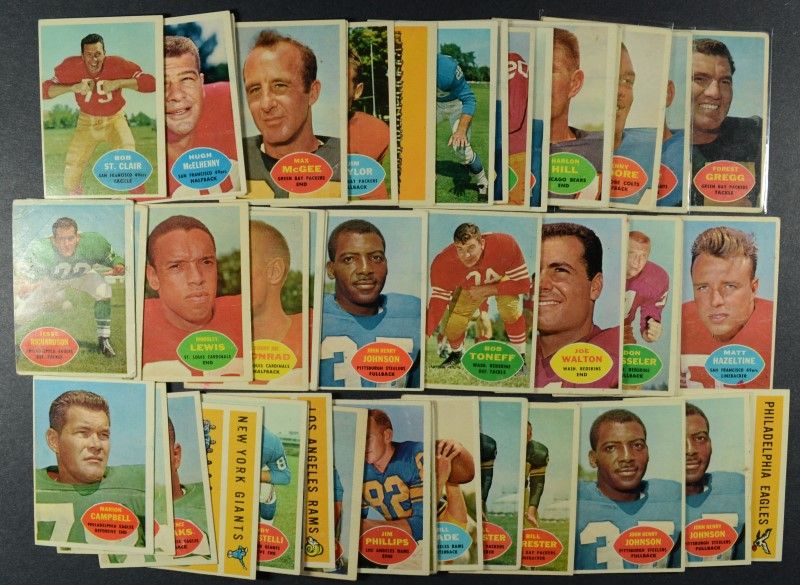 1960 TOPPS FOOTBALL LOT (50 cds) MOSTLY ALL DIFFERENT, NICE VGEX - EX
