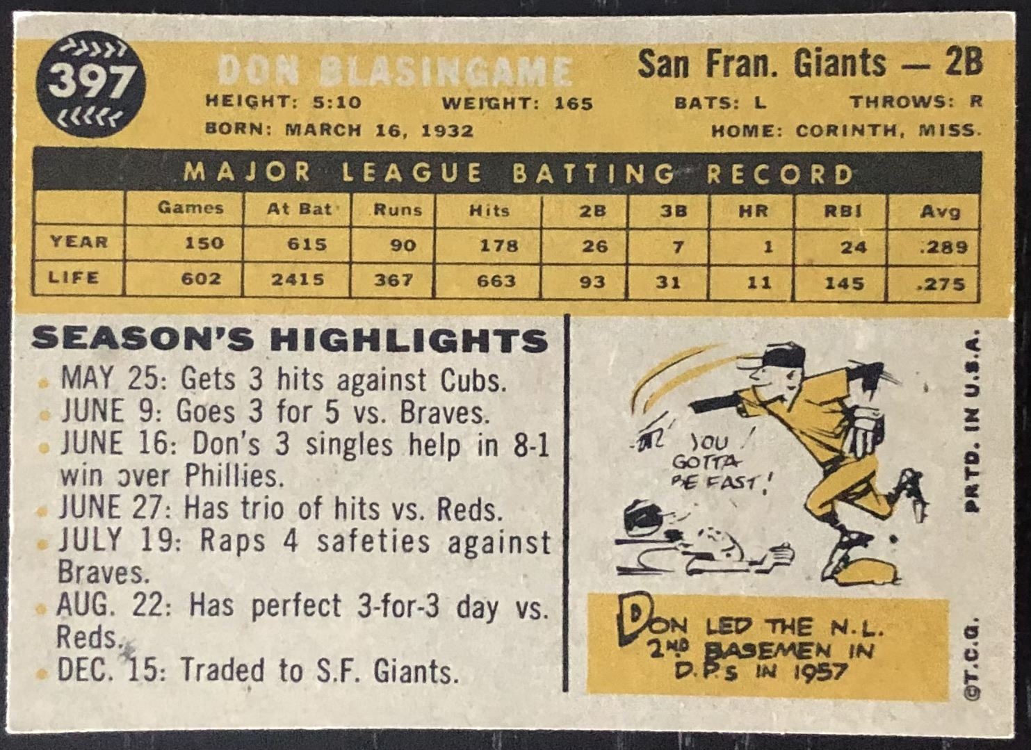 Card #397 vintage, MLB, baseball