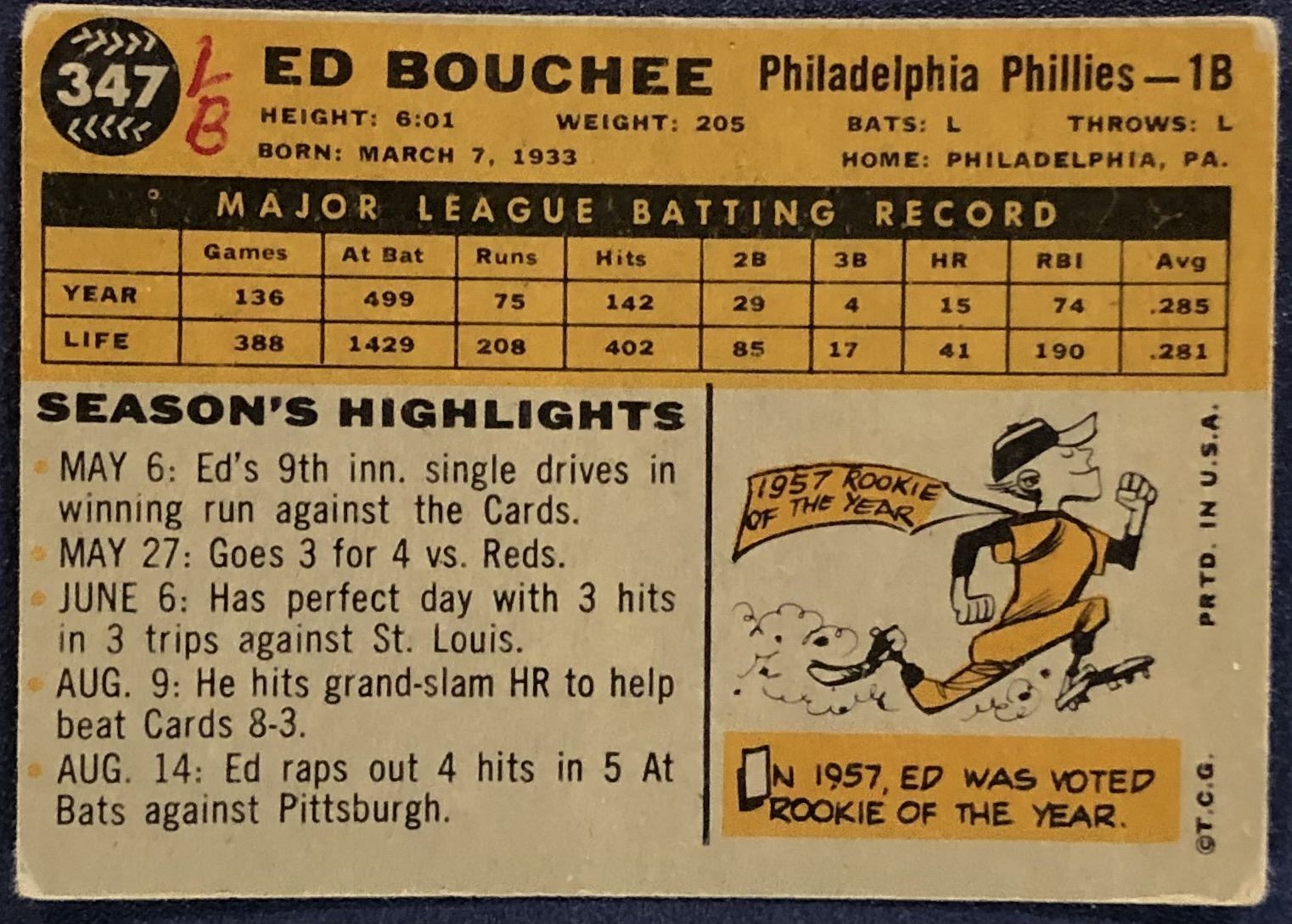 Card #347 (ink on back) MLB, baseball, vintage