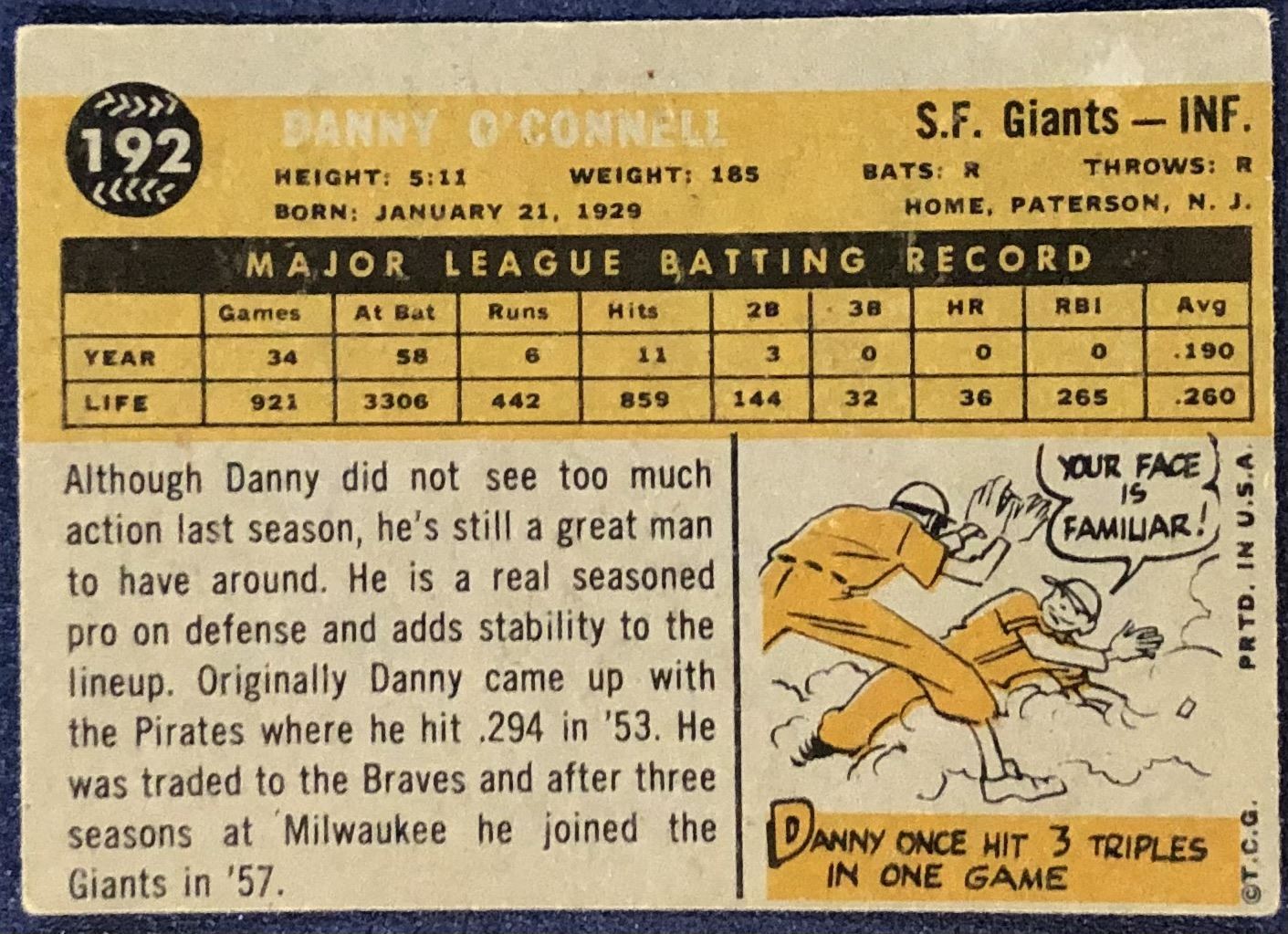Card #192 MLB, baseball, vintage