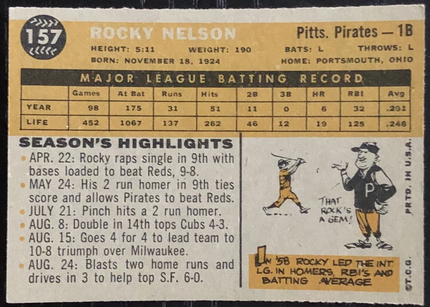 Card #157 MLB, baseball, vintage