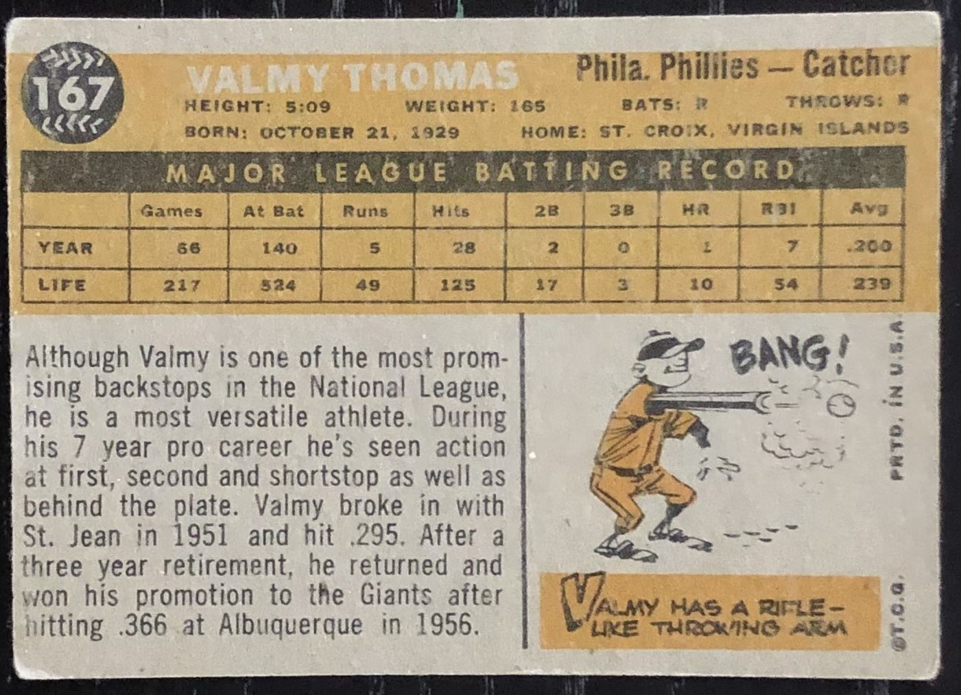 Card #167 MLB, baseball, vintage
