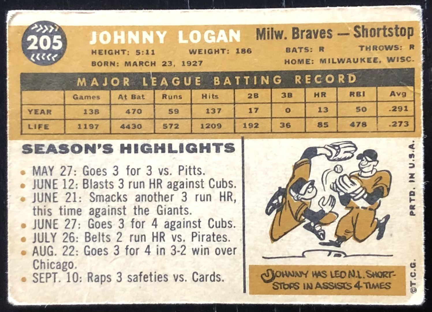 Card #205 MLB, baseball, vintage