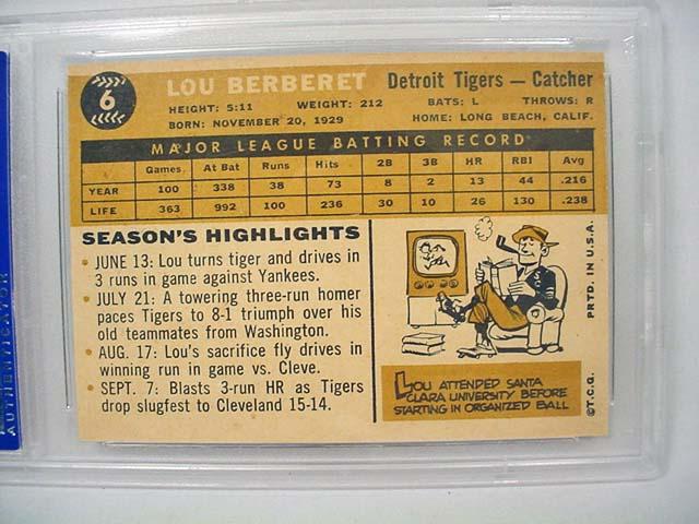 1960 TOPPS LOU BERBERET BASEBALL CARD NO. 6 - PSA NM 7