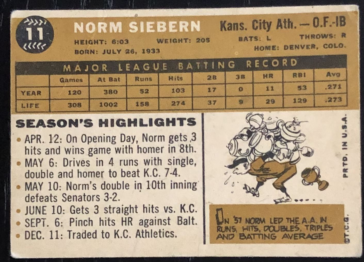 Card #11 (filler quality, crease) MLB, baseball, vintage