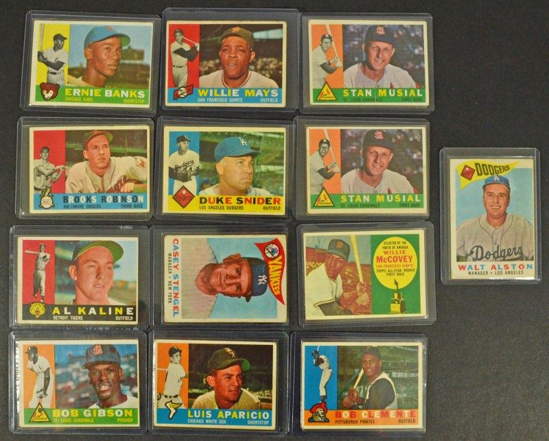 INCLUDES #10 BANKS VG, #28 B ROBINSON VG, #50 KALINE VGEX, #73 GIBSON hole, #200 MAYS GOOD, #212 & #227 MGR GOOD, #240 APARICIO, #250 MUSIAL GOOD, #250 MUSIAL VG, #316 McCOVEY VGEX, #326 CLEMENTE VG & #493 SNIDER GOOD. EST 200.00-230.00