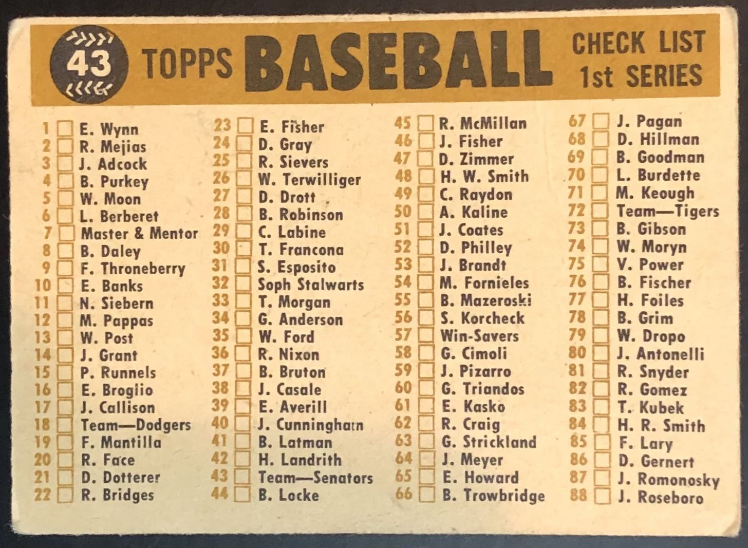 Card #43, soft corners MLB, baseball, vintage