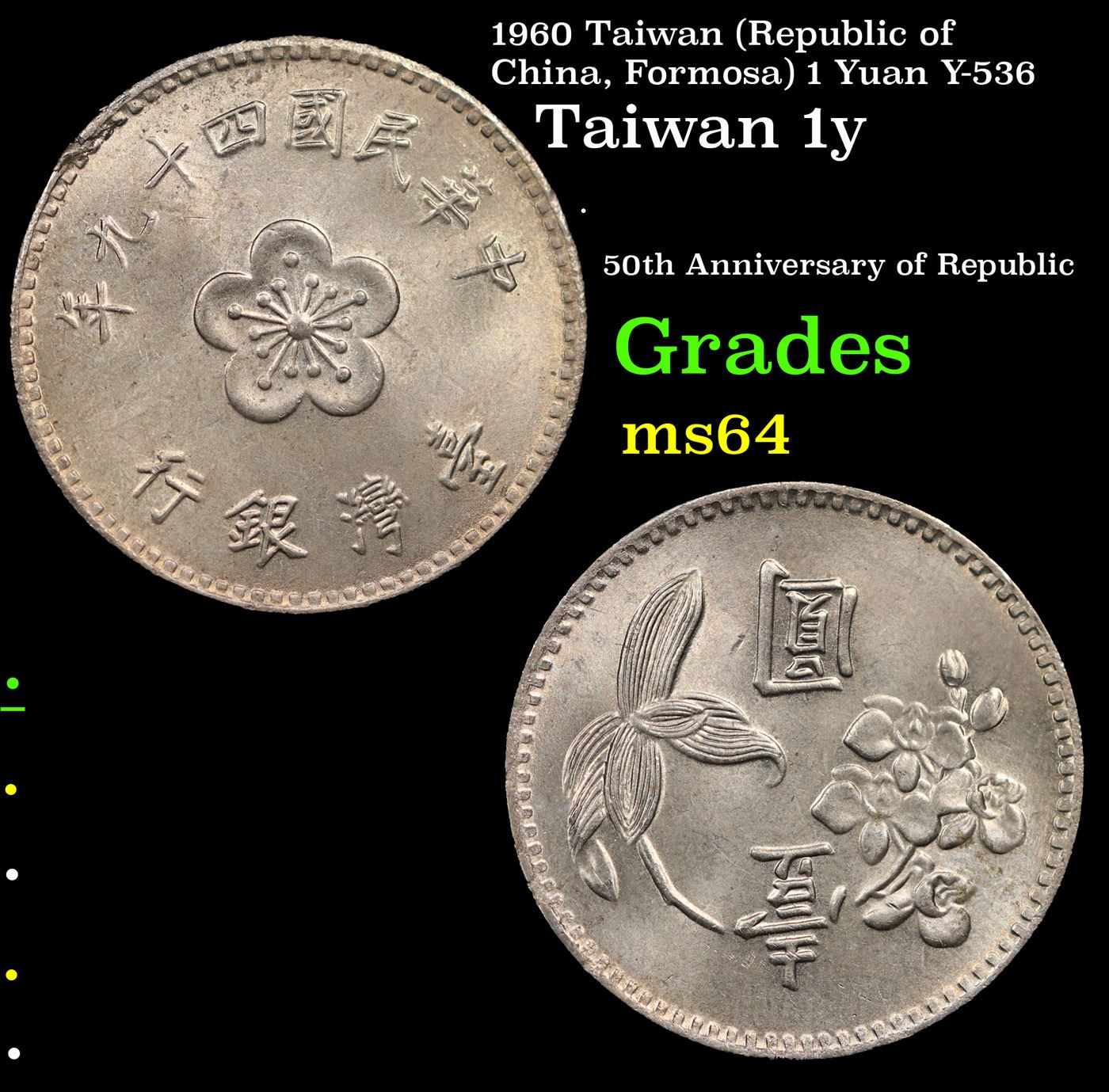 1960 Taiwan (Republic of China, Formosa) 1 Yuan Y-536 Grades Choice Unc.