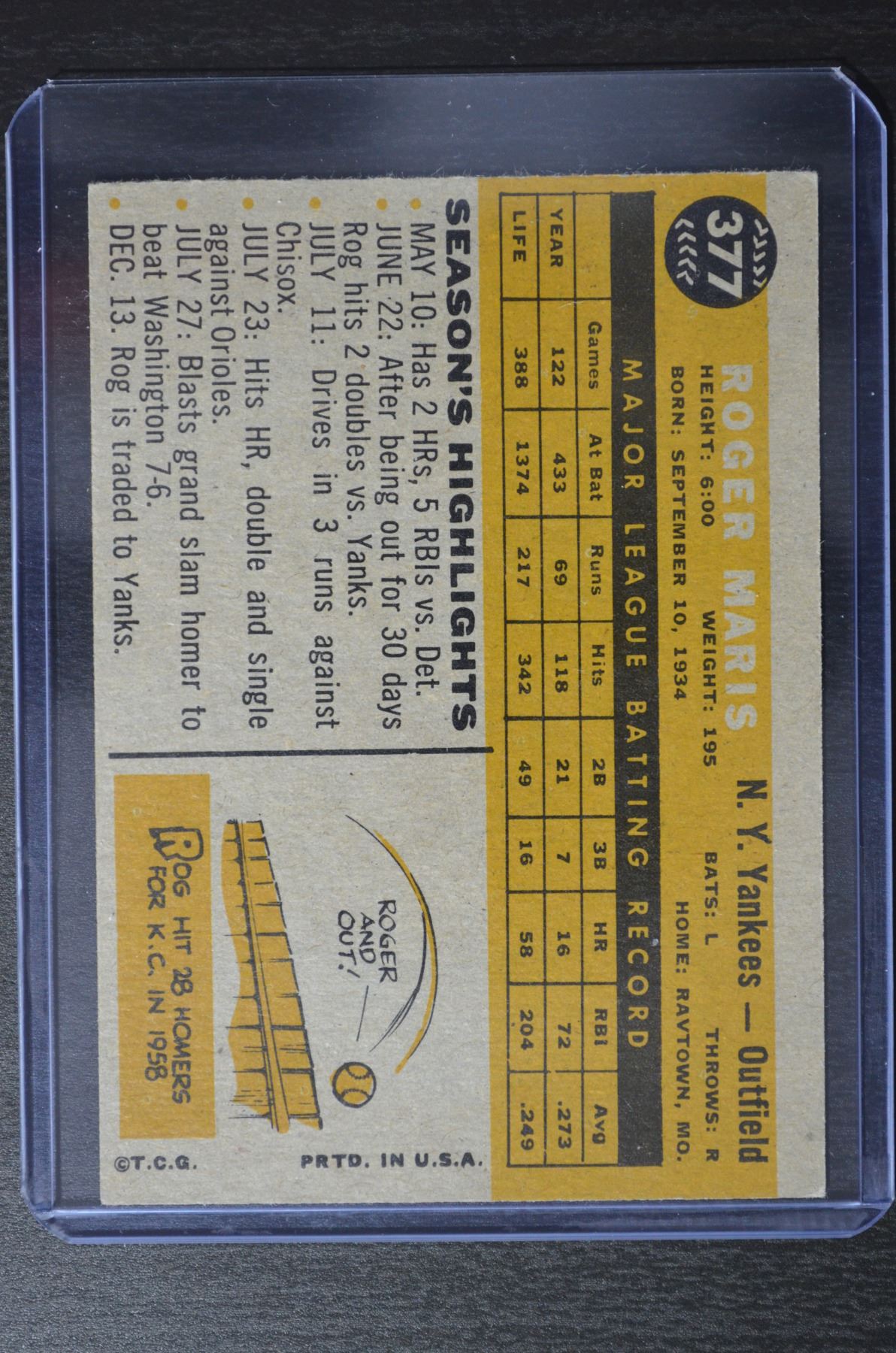 1960 Topps #377 Roger Maris