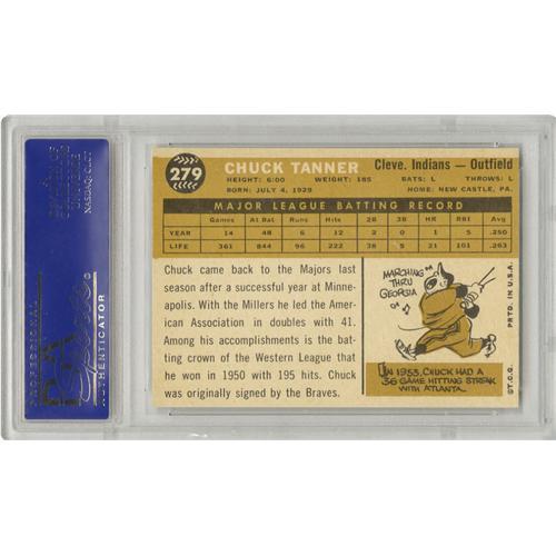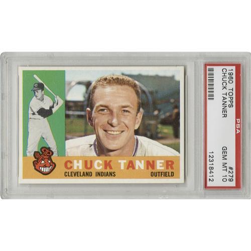 <B>1960 Topps Chuck Tanner #279 PSA Gem Mint 10.</B></I> Consider this mind-blowing fact: over 93,000 cards from the 1960 Topps set have found their ways into a PSA slab, yet only forty-one from this issue have ever garnered a rating of Gem Mint 10. You're looking at one of them, and the only such example of a Tanner specimen. No need to go into specifics--everything is simply perfect here. <BR><BR><B>Important notice:</B> Heritage usually auctions material at the rate of 200-250 lots per hour. On some occasions eBay Live bid software or the Internet may not be able to keep up with the pace of the auction. We recommend placing a realistic absentee bid now as insurance to avoid disappointment. Occasionally the auctioneer may eliminate or reject an eBay Live bid, and the auctioneer may also reopen a lot after the close of the eBay live bidding (usually because we missed an audience bid), and may reject your bid even if it shows you as the winning bidder. By bidding via eBay Live, you agree that Heritage may award the lot to another bidder at its sole discretion under the circumstances described above or any other reasonable circumstances. Since eBay bids are not shown to us until we open the lot on the floor, we treat those bids just like floor bids. In most cases the floor responds before the eBay bid is presented to us, due to Internet lag time, so for consistency we have made it a policy that floor bids are always considered first over tie eBay live bids. Also please note that all Heritage lots purchased through eBay Live carry a 22.5% Buyer's Premium. Please make sure you read the Terms and Conditions before you bid. This lot is being auctioned in conjunction with a live floor auction by Heritage Galleries & Auctioneers. All final auction and invoice information will be supplied by Heritage Galleries & Auctioneers, and all other information should be considered preliminary. Lot:19583 <BR><BR><B>Winning Notification and Billing:</B> After the FINAL session in this auction is complete, Heritage will send e-mail and snail mail invoices. This process normally takes several days. All final auction and invoice information will be supplied by Heritage Galleries & Auctioneers, and all other information should be considered preliminary. <BR><BR>This auction will be conducted on a live auction floor and over the Internet through eBay Live. If you choose to place an absentee bid, please take a moment to <font color='#0000ff'><u><a href='http://pages.ebay.com/liveauctions/help/before/laabsentee.html'>learn how eBay Live absentee bidding works</a></u></font><font color='#000000'>