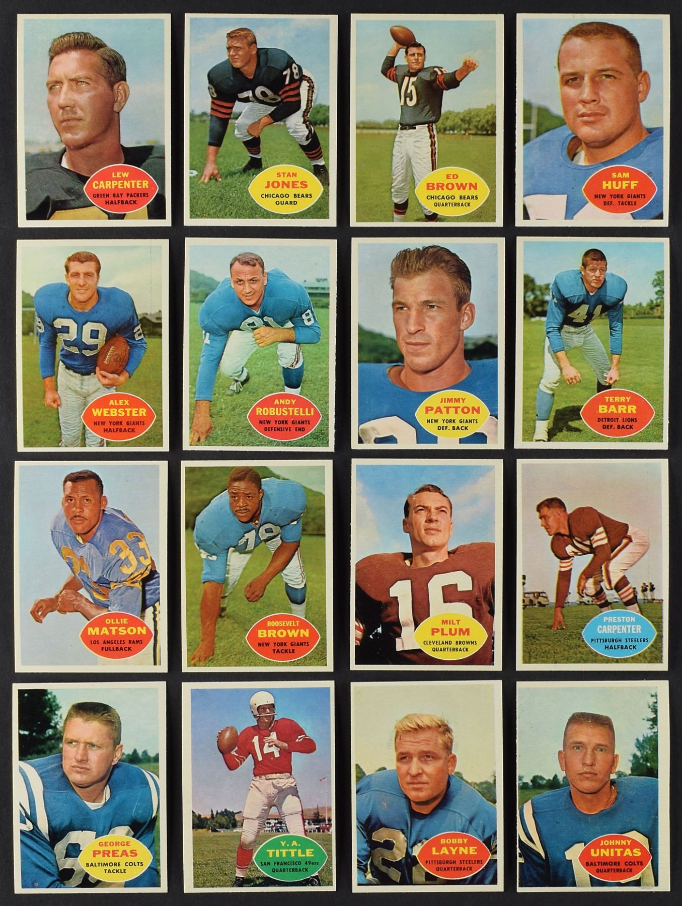 High grade offering of the 1960 Topps football set. Razor sharp corners abound, with only a handful having light 'dings.' Vending quality throughout. A total of 20 cards have been graded by PSA.