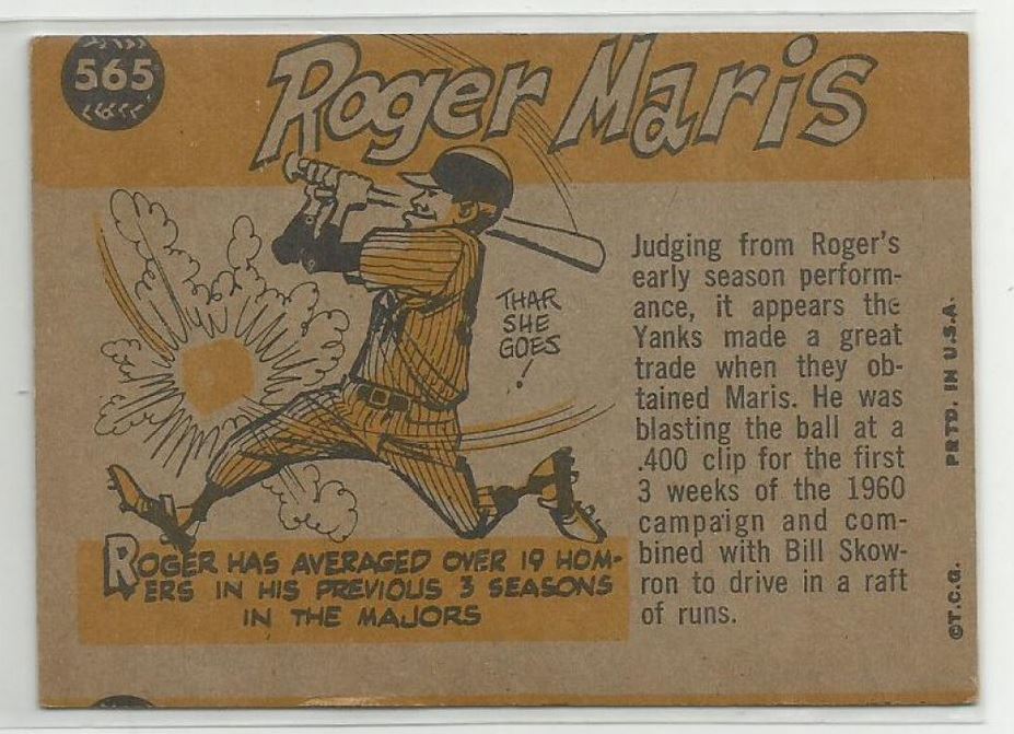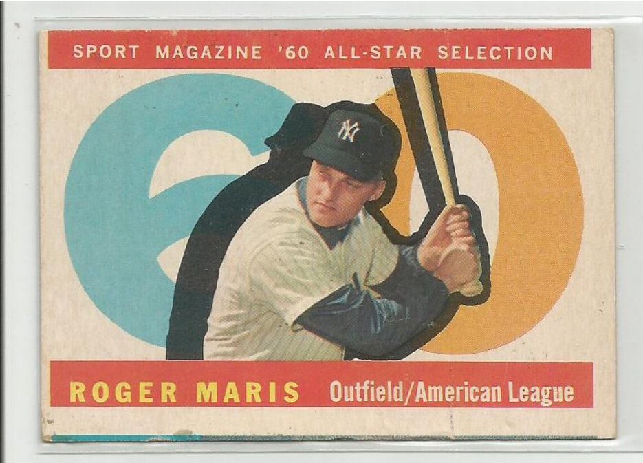 This Vintage 1960 Topps All-Star Card of Roger Maris is in Very Good to Excellent Condition.