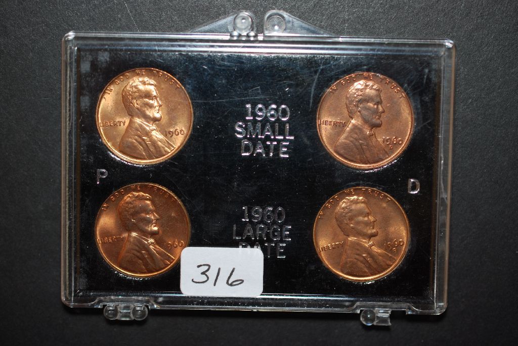 1960 US Lincoln Penny Coin Set; Small Date P&D Mints & Large Date P&D Mints; Lot of 4 Coins; EST. $5-10