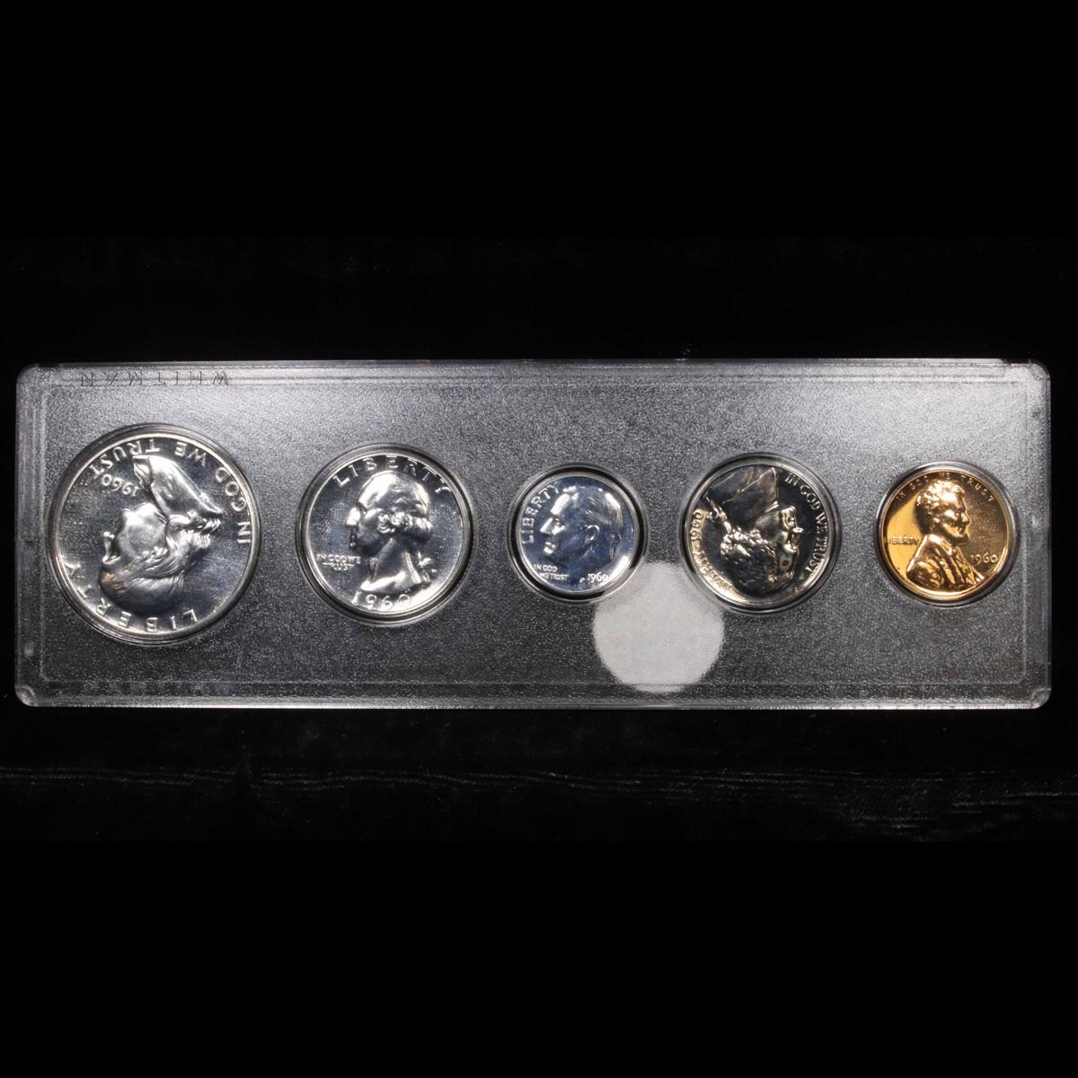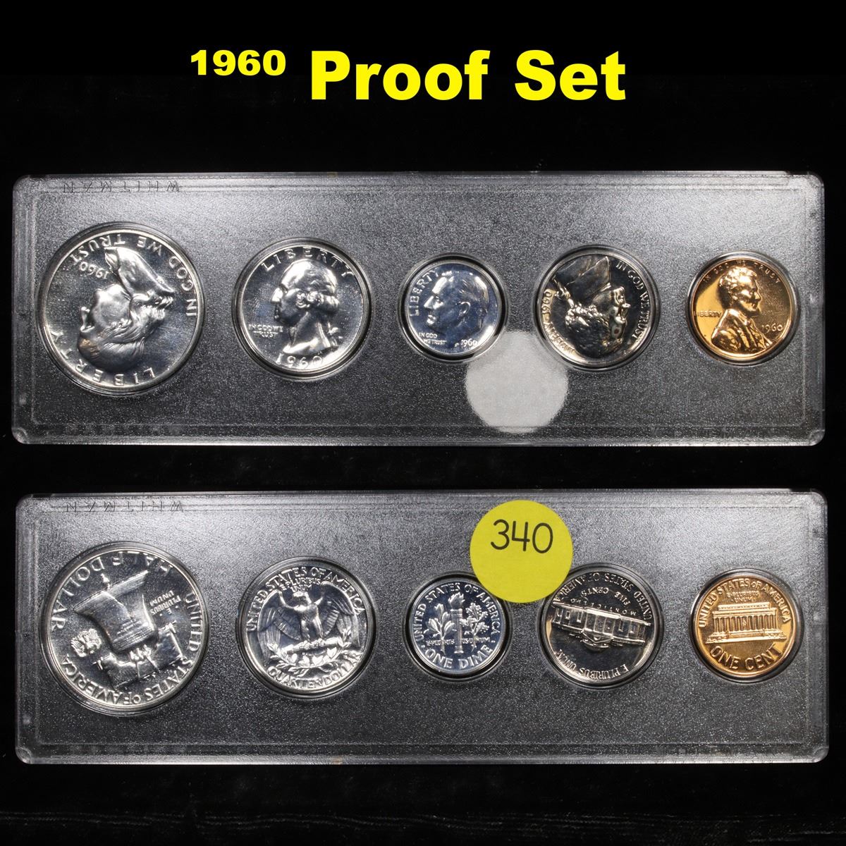 1960 United States Proof Set in Whitman Plastic Holder. This set, has a 90% Proof Silver Franklin Half Dollar, a 90% Proof Silver Quarter, a 90% Proof Silver Dime, plus the proof nickel and proof penny. All encased in a Whitman Plastic Holder.