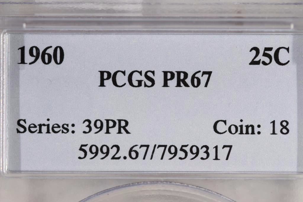 1960 WASHINGTON SILVER QUARTER PCGS PR67