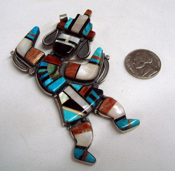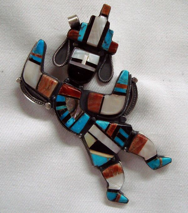 1960 Native American Zuni Knifewing Kachina Pin/Pendant - Henry Morgan. The Zuni inlay work was done in the early 1930's-1940's (Old Pawn) and then later the silver work was done by Navajo artist Henry Morgan. Very neat piece.