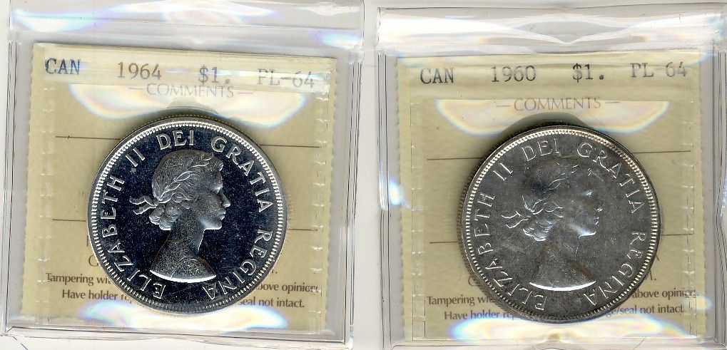 1960 and 1964 1 Dollars, ICCS PL64; 1964 Cameo.