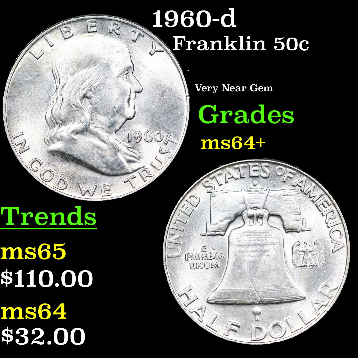 1960-d Franklin Half Dollar 50c Grades Choice+ Unc.